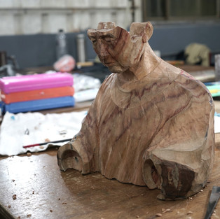 這是何先生在工坊的第四件作品,題材無論是一開始的小鳥、小豬到後來的父母都是他所熟悉且親近的。生活中充滿了值得紀錄的人事物,有人用相機拍下,有人用筆寫下,在這裡我們用木雕將其刻畫。